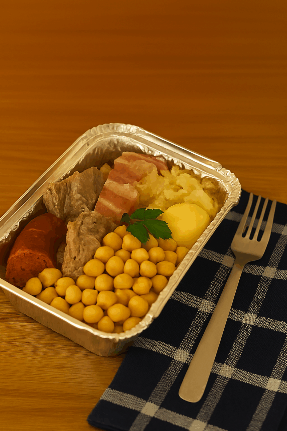 Nuestra carne y verdura del cocido reúne todo lo esencial: morcillo jugoso, pollo tierno, chorizo sabroso y tocino suave, acompañados de zanahorias, patatas y repollo cocidos lentamente en caldo casero. Un plato completo, lleno de sabor y tradición.